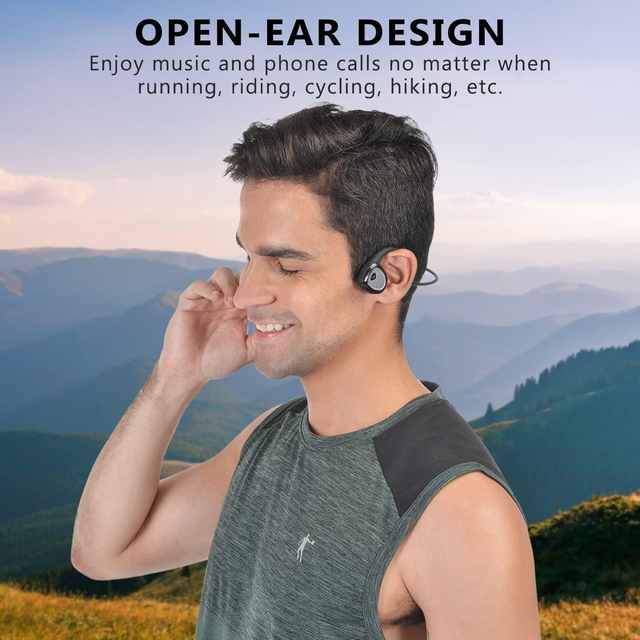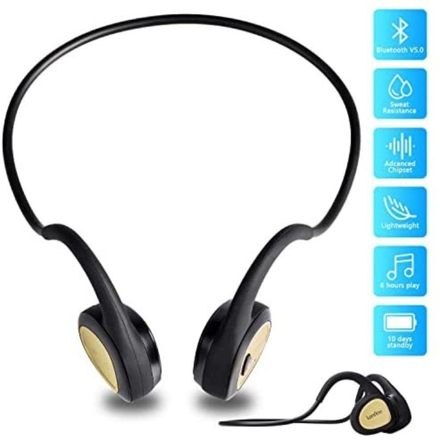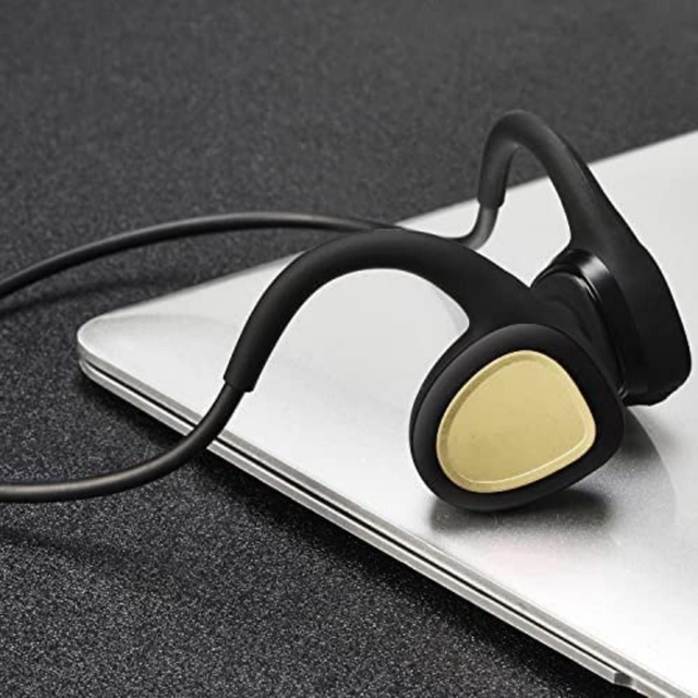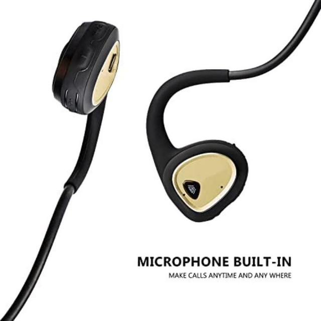 Hanngo.R R10 Auriculares Inalámbricos de Conducción Ósea Bluetooth 5.0 Cascos Deportivos Audífono para Correr Ciclismo con Micrófono Integrado Oro
